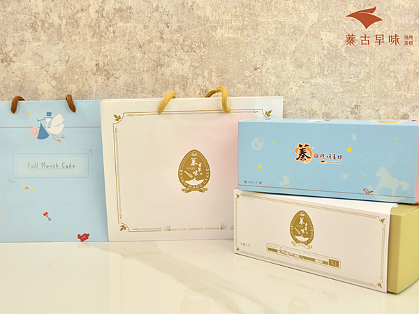 彌月禮盒—「送子鳥禮盒」,粉嫩色系的送子鳥包裝,散發出滿滿的溫馨氣息,讓收到彌月禮盒的人感受到寶貝的滿滿童貞,兒時的快樂回憶浮現眼前,被單純的快樂包圍其中,就像蓁古早味的蛋糕想要傳達的理念一樣。